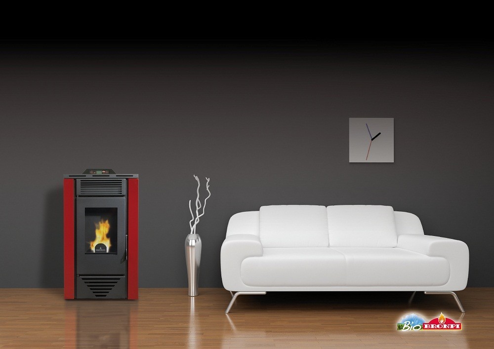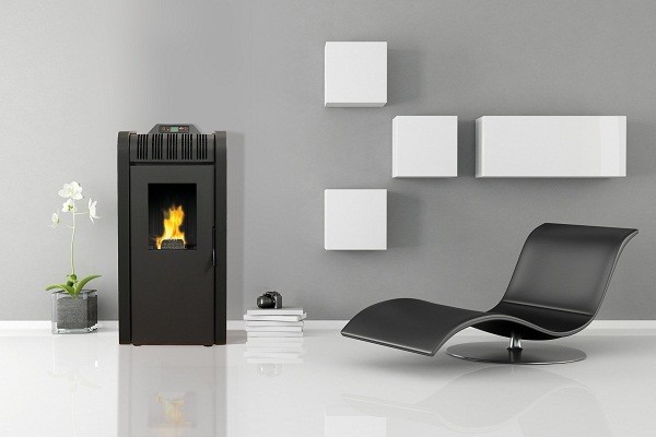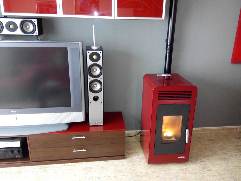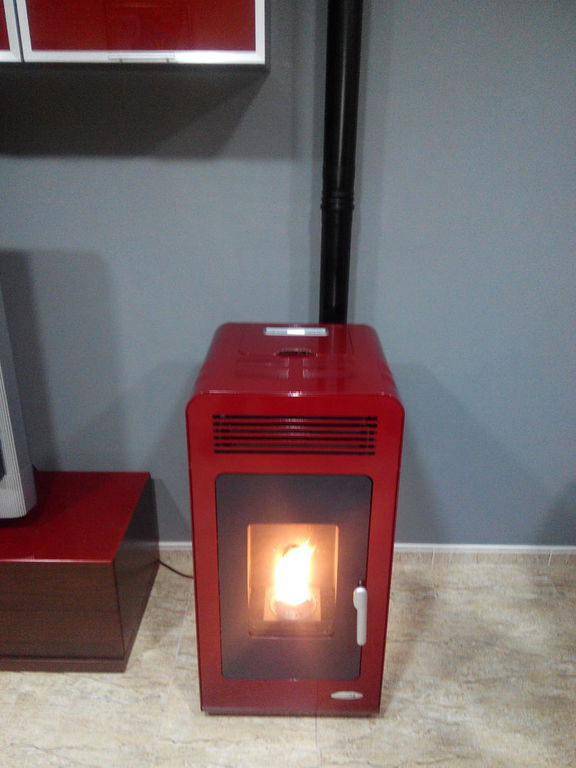 Su potencia puede ser entre 10 y 30 kW, y su eficiencia del 70-90%. Calientan un circuito de agua que irá a calefacción o a ACS. Son programables y se puede regular su potencia. El depósito de pellets viene incorporado en la misma estufa, con una capacidad de unos 20-60 kg. Requieren un mantenimiento casi diario de limpieza y no es recomendable como único sistema generador.